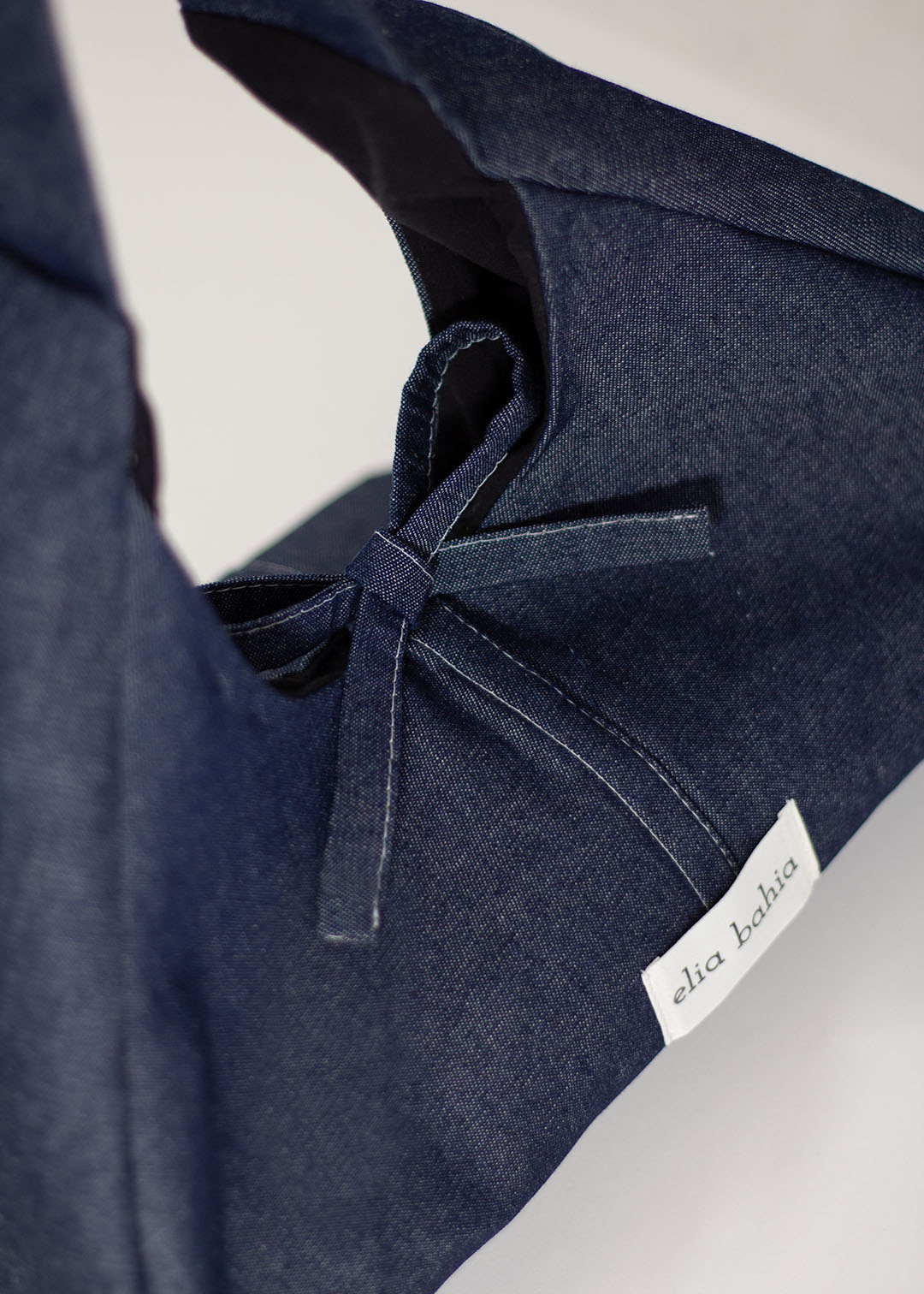Este ejemplar confeccionado 100% con tela denim de algodón, tersa y resistente, es ideal para conservar la memoria de caminos recorridos. Con su única asa y su lazo central, podrás abrazar todo lo que necesitas en el dÃa.